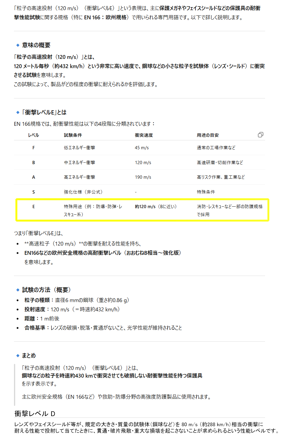 常温での粒子の高速投射(120 m/s)(衝撃レベルE)